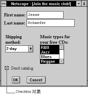 The HTML INPUT tag, with "checkbox" as the value of the TYPE attribute. For a given form, the JavaScript runtime engine creates appropriate Checkbox objects and puts these objects in the elements array of the corresponding Form object. You access a Checkbox object by indexing this array. You can index the array either by number or, if supplied, by using the value of the NAME attribute.